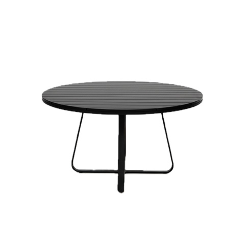 A Mesa Amont se destaca pelo tampo em madeira cumaru, disponível nas versões ripado ou em pizza, ideal para áreas externas. O design se completa com os pés em alumínio de formato arredondado, trazendo charme, equilíbrio e sofisticação à peça.
