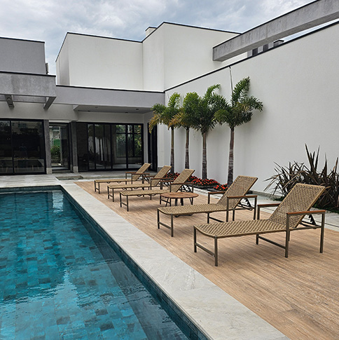 Puro luxo em cada detalhe. A Espreguiçadeira Arbois combina acabamento em cordão náutico com detalhes em madeira cumaru, criando uma peça imponente e elegante. Cada elemento foi pensado para transformar áreas externas em ambientes de alto padrão — simplesmente deslumbrante.