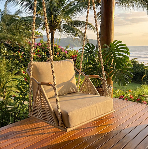 A estrutura em alumínio, a pintura eletrostática e os acabamentos como corda náutica, tela sling, fibra sintética e tecidos Solaris ou Aquablock garantem resistência ao sol, chuva e variações climáticas — mantendo durabilidade e estética por muitos anos.