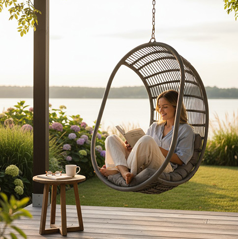 Versátil e acolhedor, o Balanço Provença pode ser usado dentro ou fora de casa, em varandas, salas e até quartos. Em espaços corporativos, é ideal para salas de descompressão. Já em bares, restaurantes e hotéis, se transforma no centro das atenções, criando ambientes leves e descontraídos.